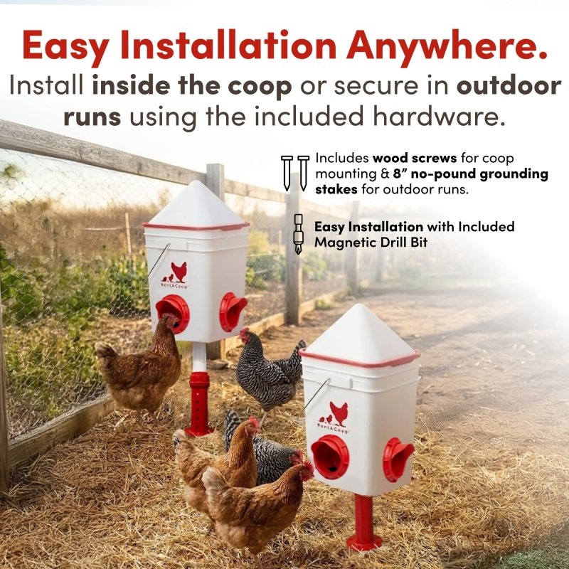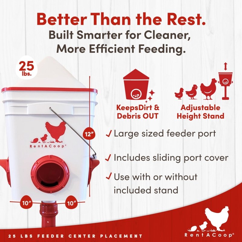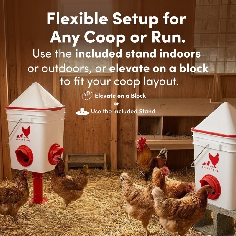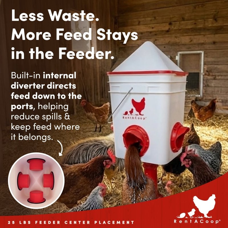 RentACoop 25lb BPA-Free Chicken Feeder with 4 Large Ports and Adjustable Stand - Center Placement