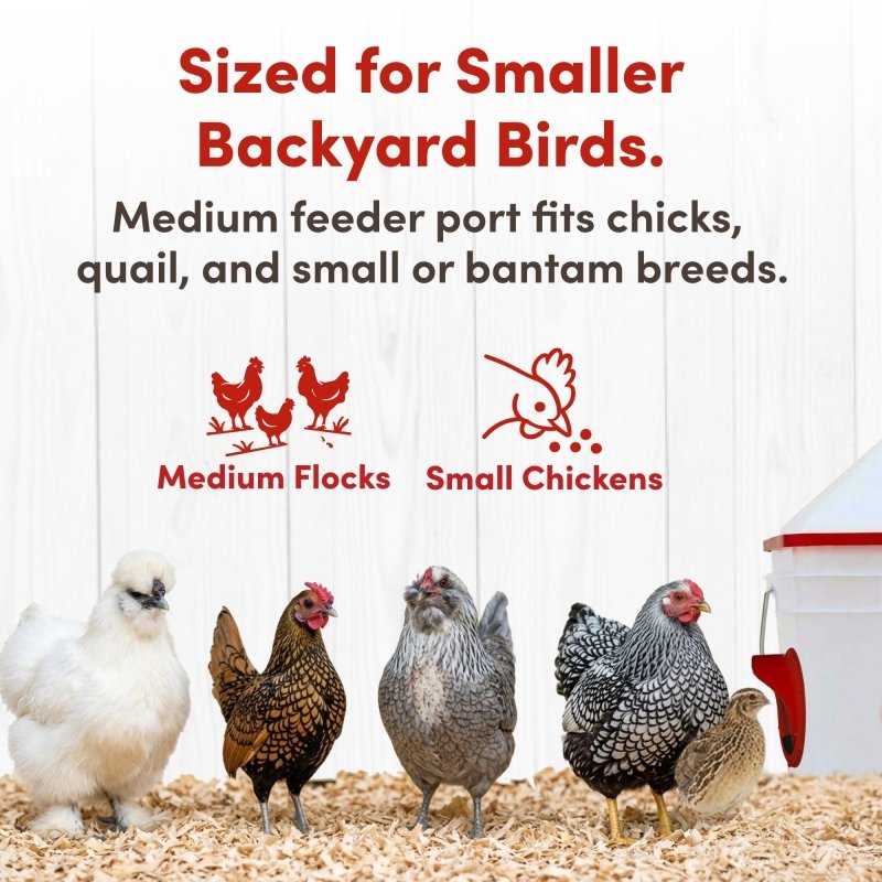 - Complete Feeder & Waterer Set | This set includes a 10lb capacity bucket feeder with 4 medium sliding-cover ports and a 2-gallon bucket waterer with auto-fill cups and horizontal nipples; everything your flock needs to eat and drink in one convenient package. Ideal for backyard chicken keepers looking to set up or upgrade their coop efficiently.