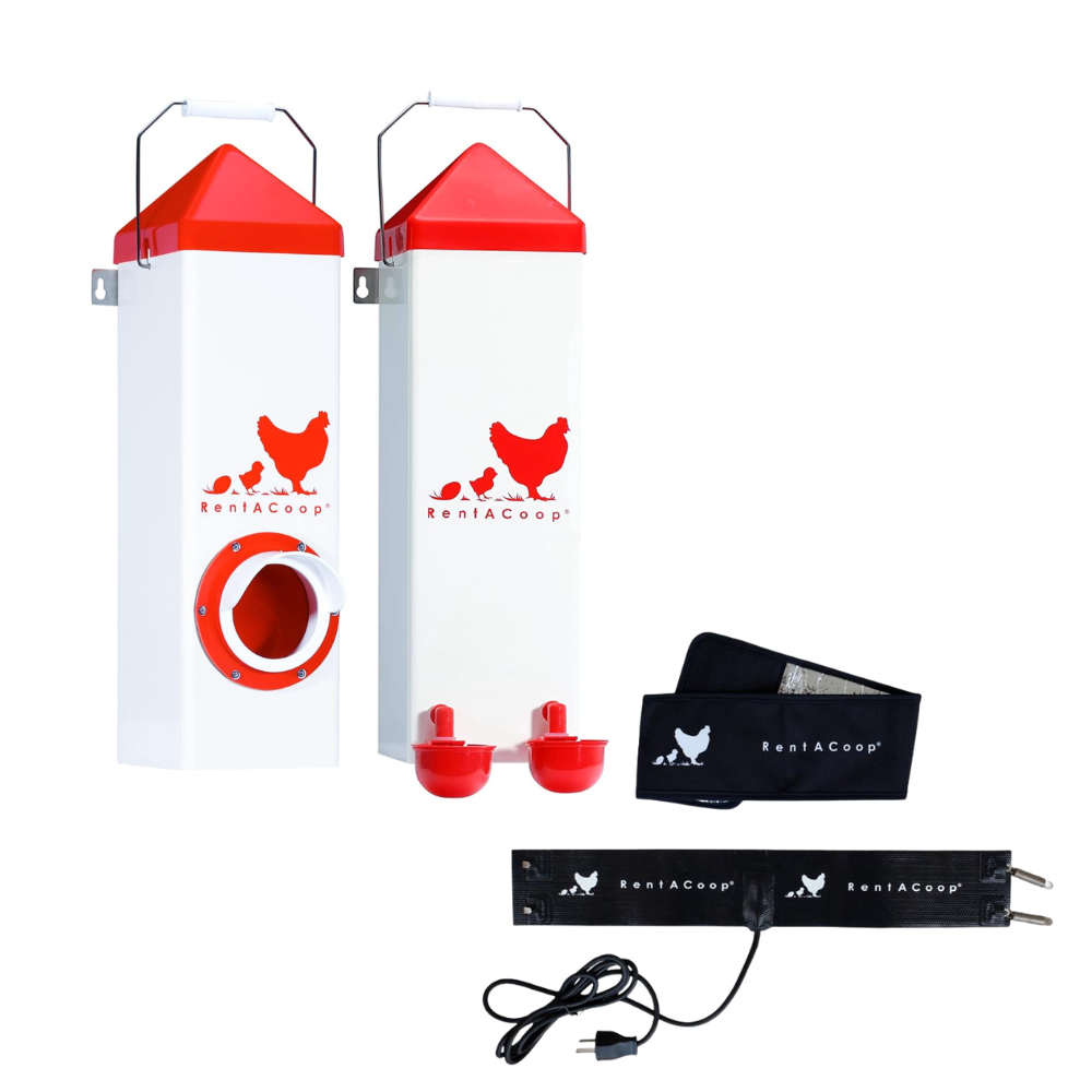RentACoop High Rise Feeder/Waterer Set & SM Thermo Bucket Belt Bundle